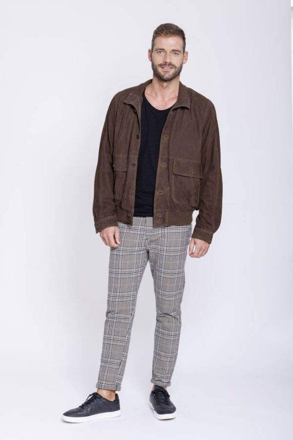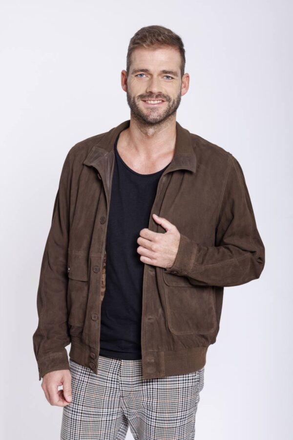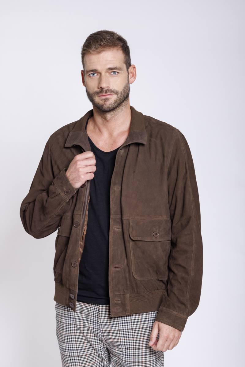 Leichter Blouson aus weichem Ziegenvelour in der Farbe Acker. Der Blouson verfügt über passende Strickbündchen am Saum und Kragen sowie aufgesetzte Taschen. Der Blouson ist auch in der Farbe Sand oder Dunkelblau erhältlich.