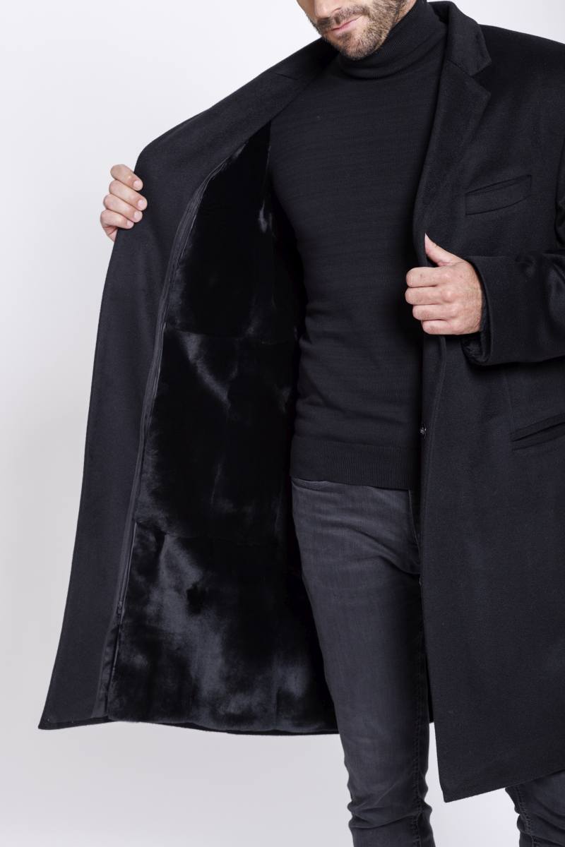 Herren Mantel Cashmere mit Samtwiesel gefüttert