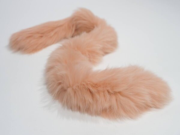 Schal aus Silberfuchs orchid pink gefärbt. Der Fuchs ist in ein Gewebe eingeflochten. dadurch ist der Schal besonders weich und anschmiegsam. Länge 95 cm.