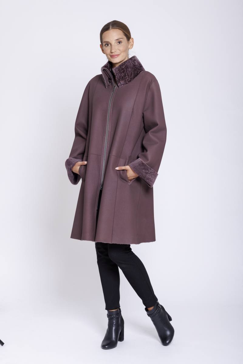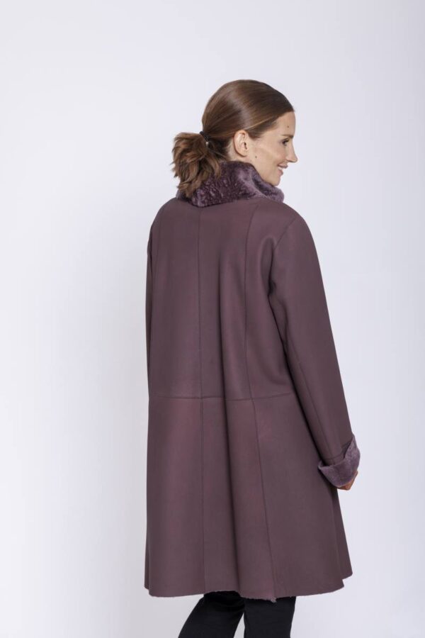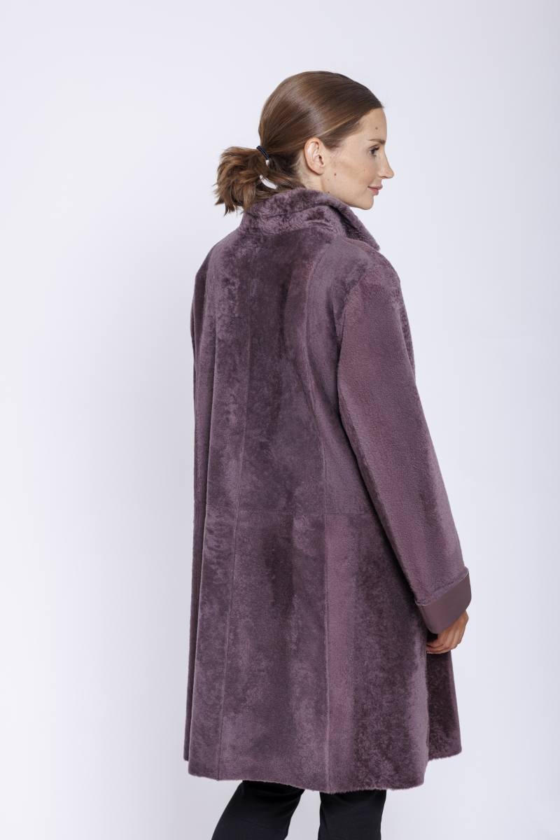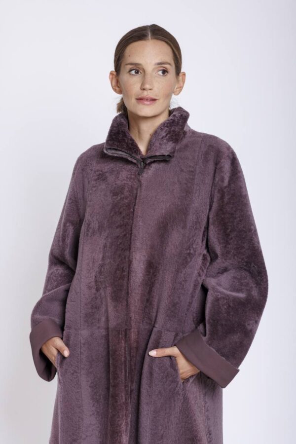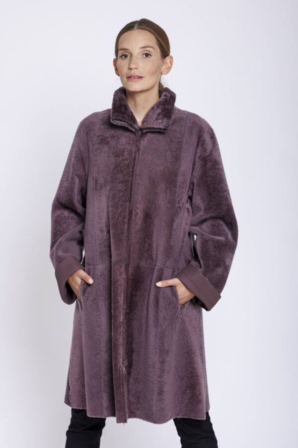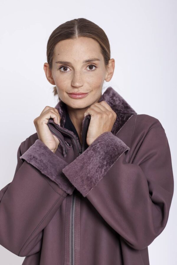 Wende Jacke aus Astraganlamm in der Farbe Melanzana. Besonders leichte Astraganlamm Jacke mit Softnappierung und mit Reißverschluss zum schließen.