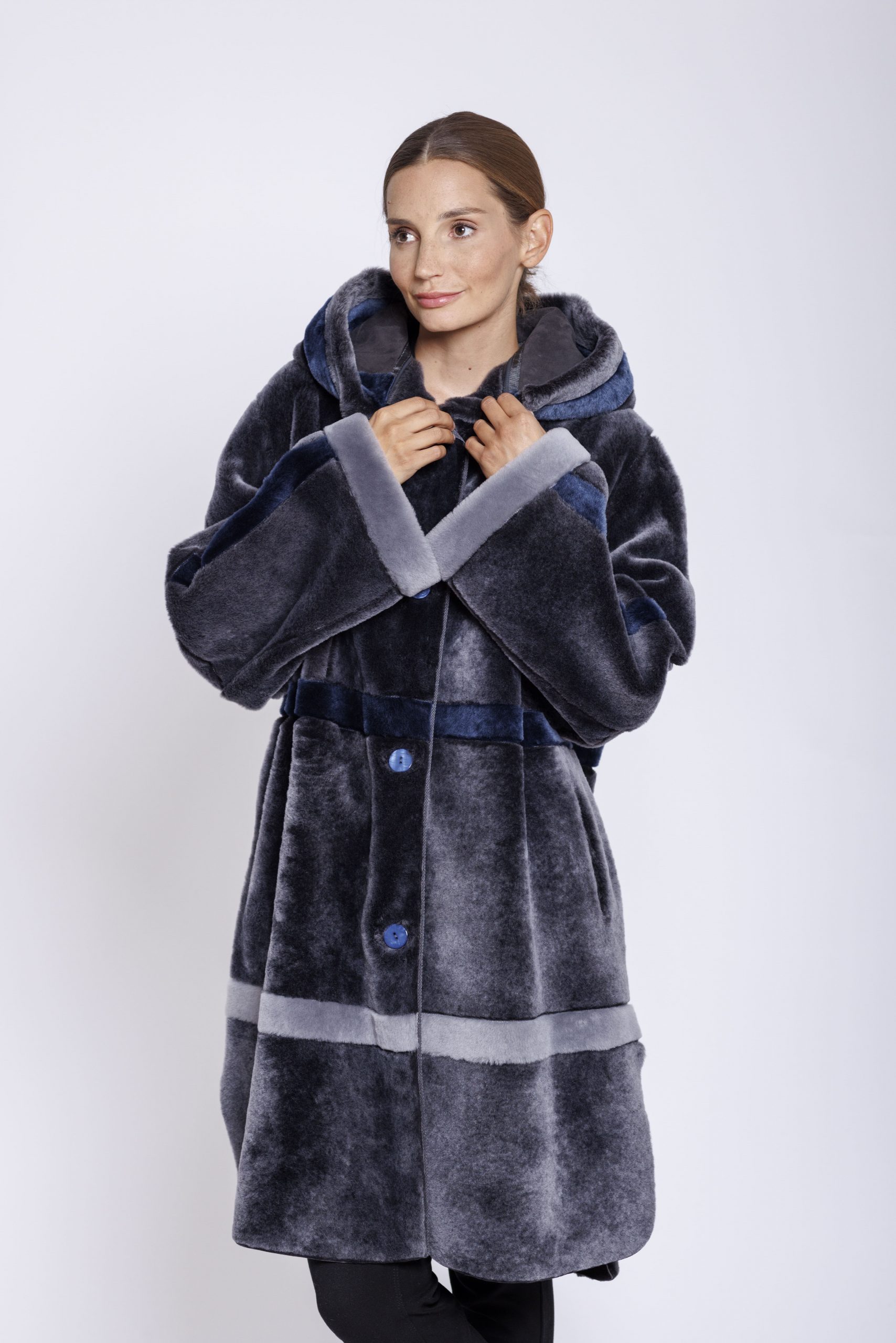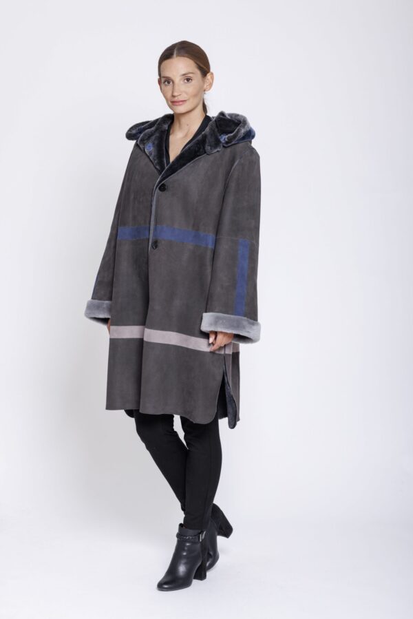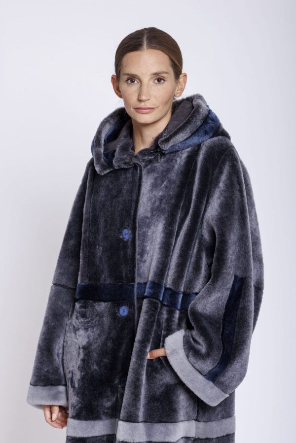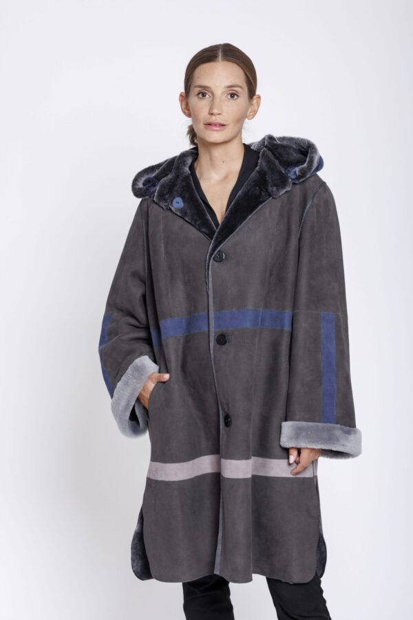 Wendemantel aus Merinolamm von Marester mit abnehmbarer Kapuze in Londra grau