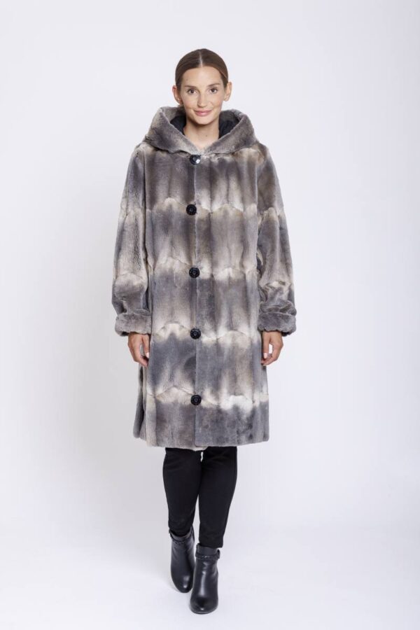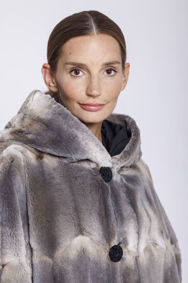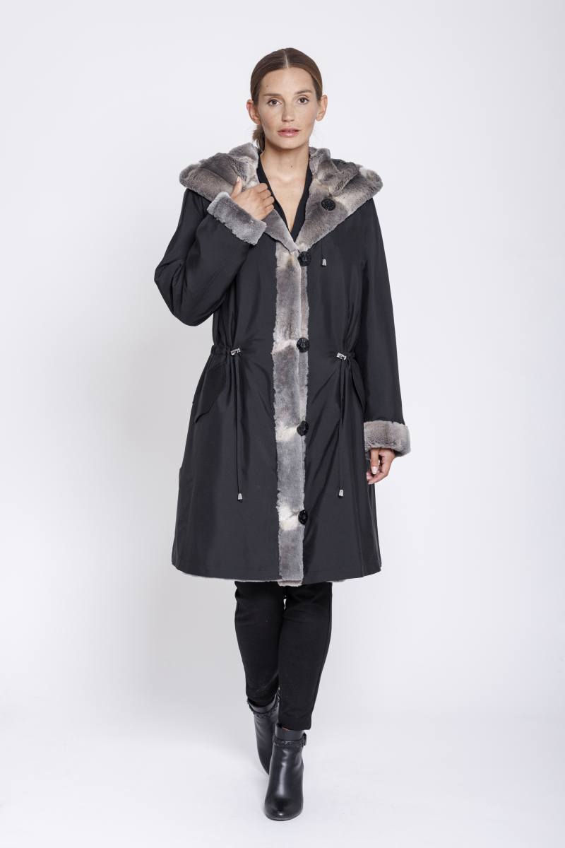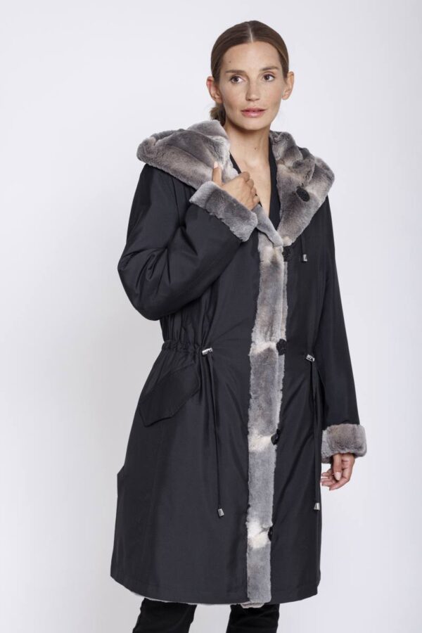 Wendeparka aus Bisam Wamme Natur mit schwarzer Microfaser We Prefur
