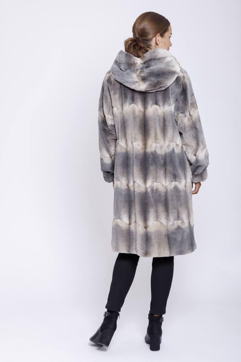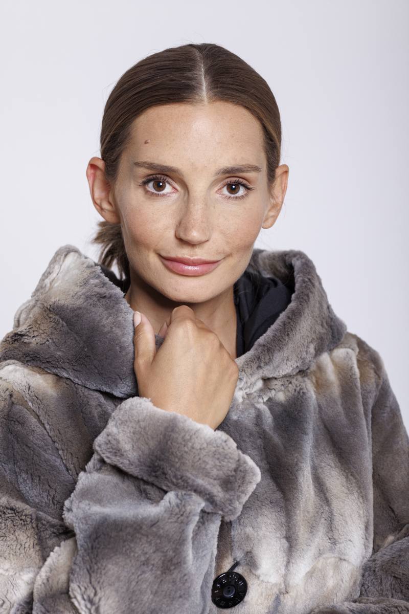 Sportlich leichter Parka aus Bisam Wamme Natur geschoren,mit schwarzer Microfaser. Der Parka hat eine große Kapuze und einen Taillienzug. Bei dem Fellmaterial handelt es sich um ein zertifiziertes We Prefur Material aus der deutschen Jagt und Hege.