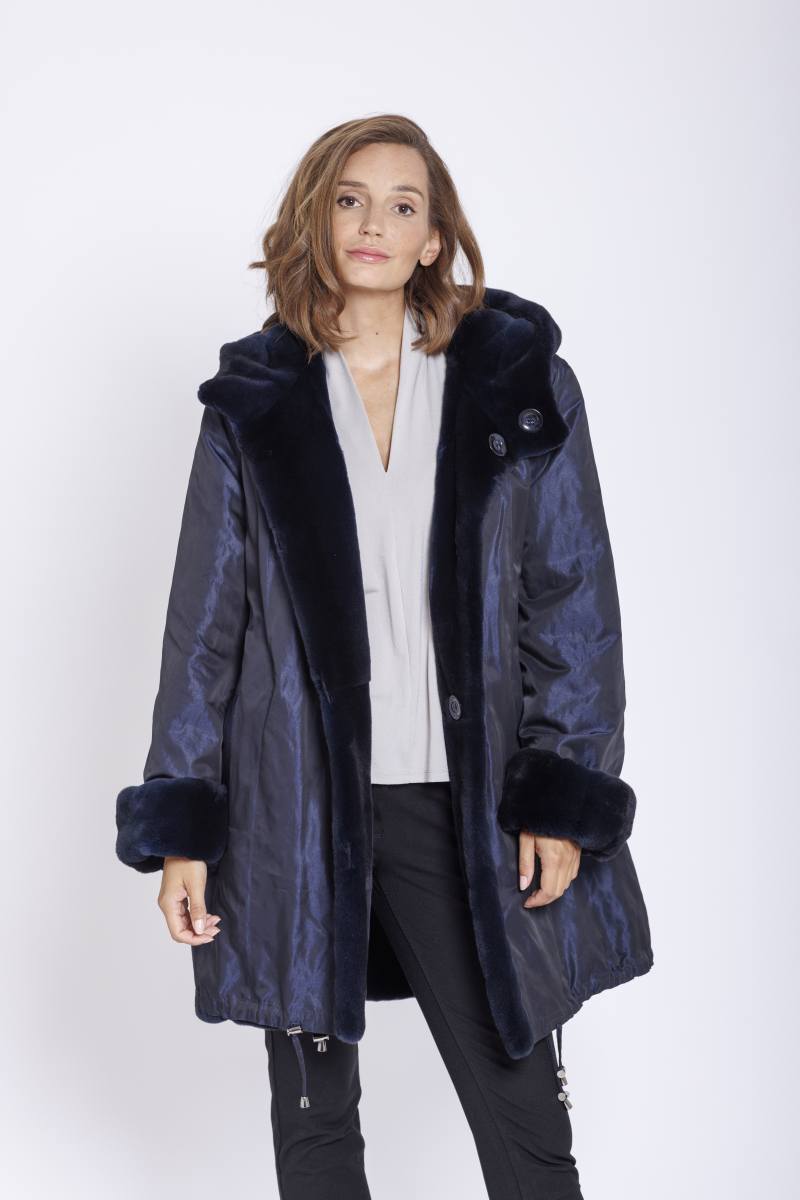 • Wendeparka aus Samtnerz mit Steelstoff dunkelblau